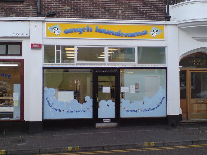 Angels Launderama offers wash and iron services, duvet cleaning (including feather and hollow fibre duvets), and free collection and delivery on all services to Deal and Walmer on Monday and Wednesday evenings between 4:30pm–7pm, subject to a £12 minimum charge. The launderette handles both bedding and non-bedding items.