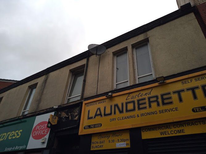 East End Laundrette is a full-service launderette located in Glasgow, offering professional washing, drying, ironing, and dry cleaning services. This family-focused launderette provides a self-service and staffed counter experience with coin-operated machines and modern tumble dryers. Customers benefit from convenient operating hours spanning seven days a week (9:30am-5:30pm Monday-Saturday, 9:30am-4pm Sunday) and a comfortable seating area while waiting. East End Laundrette has earned a strong reputation for reliable, efficient service with friendly staff who consistently deliver clean and well-processed laundry, making it a trusted choice for locals seeking quality laundry solutions.