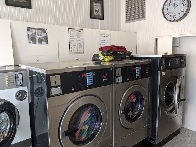 The Laundry Room provides a seating area, folding tables, books to read, and baskets to help customers move clothes comfortably. The facility features clear visual instructions on the machines and has on-site staff available to assist. However, WiFi is not available on-site.